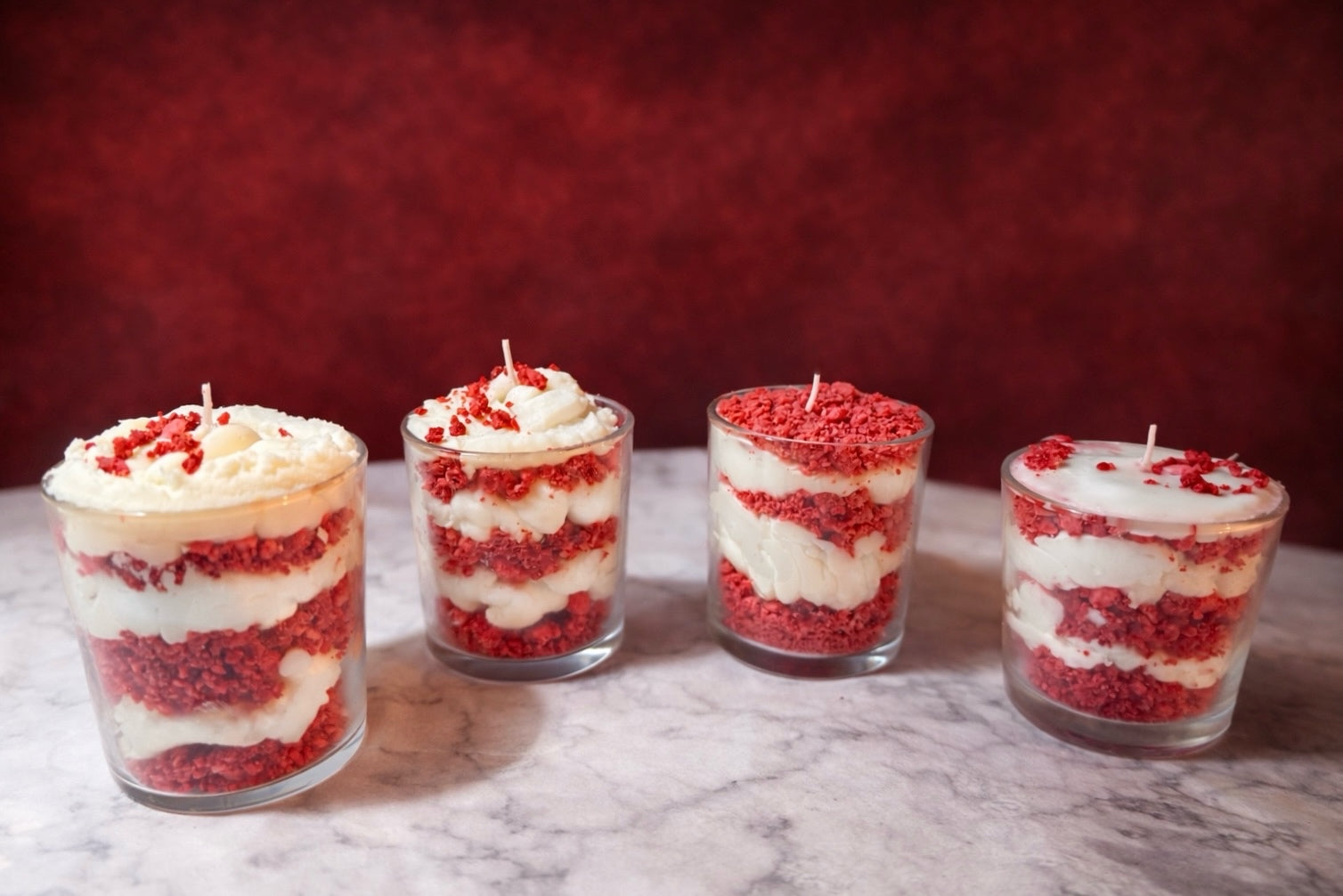 Αρωματικό κερί Red Velvet σε δύο μεγέθη. Επιλέξτε το αγαπημένο σας άρωμα από την πλούσια συλλογή μας.